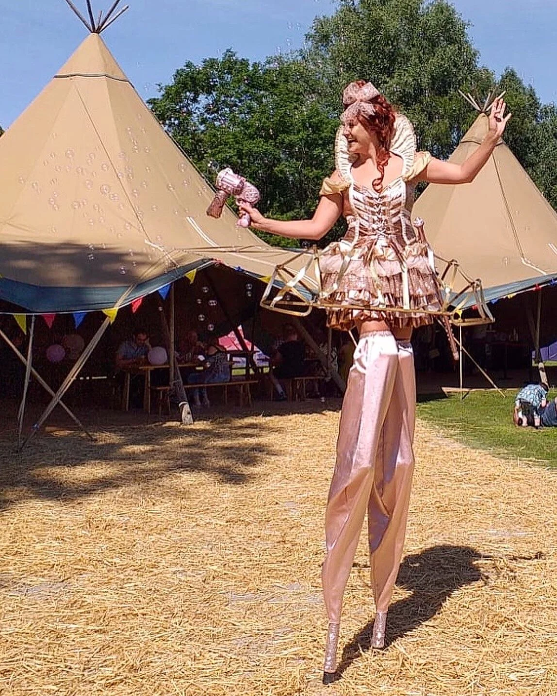 Miss Möet is a high end stilt walking bubble act. Swanning through a crowd like a PG version of Ab Fab, Miss Möet inserts a sparkly fizz to any occasion. With her dazzling signature champagne styling inspired by Queen Elizabeth I, she also comes with an endless supply of bubbles. Top shelf darling!